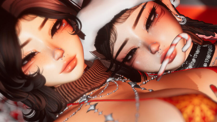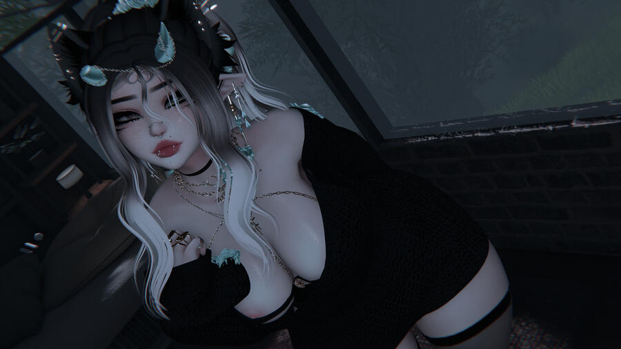 Bikini, garter, socks, shorts, sweater, lynx set, candycane, piercings: Nessy
